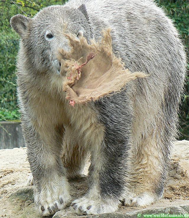 Auch Knut hatte seine ihm eigene Art zu trauern. Als Thomas Dörflein seinen ersten Wochendurlaub nahm, Knut war sehr traurig und hat sich - nachdem er am Morgen strahlend weiß auf die Anlage gebracht worden war - im Laufe der Spielstunde immer stärker mit Sand bedeckt. Vielleicht wollte er sich mit diesem "Make-Up" vor seinem eigenen Kummer schützen?