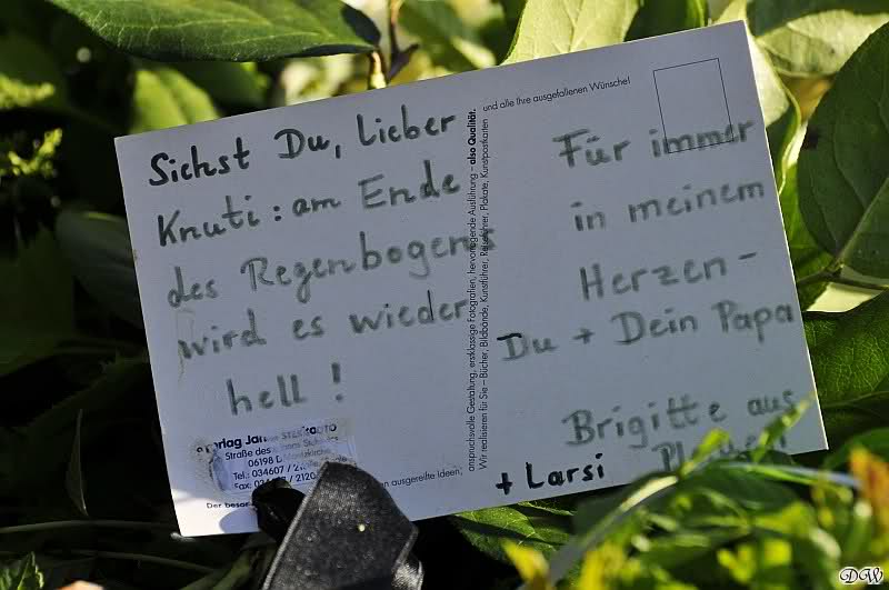 Heute Vormittag befanden sich das Foto, die Blumen und das kleine süße Plüschbärchen an der Anlage. Ob die Sachen wohl am Nachmittag noch dort waren?