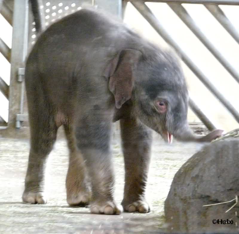 Ich möchte mich noch einmal vorstellen. Ich bin Ko Raya, der neue Berliner Minifant. Im Februar 2009 war meine Geburt angekündigt. Aber ich fühlte mich so wohl, in meiner Wohnung. Meine Mama sagte aber schon, dass sie bald den Mietvertrag kündigen will,ich müsse nun bald auf eigenen Beinen stehen. Wie Mütter nun mal sind, fackelte sie nicht lange. Am 15.3.2009, um 4: noch was, plumps, da war ich. Da lag ich nun, in der großen, weiten Welt, im Stroh. Sah ja komisch aus, meine Mama von aussen. Dann sollte ich schon bald auf diesen besagten 4 Beinen stehen. Hey, das ist gar nicht so einfach! Ganz schön wackelig, diese Stelzen. Aber, Übung macht den Meister, sagte Mama. Dann hatte ich Hunger. Wo gabs was zu Essen, äh Trinken? Bei Mama, die Milchbar war schon geöffnet. Nun das nächste Problem. Ich hab da so was komisches vorne hängen, Mama hat das auch. Ein Rüssel!? Ach so. Und wie trinke ich damit?? Damit gar nicht, sondern mit dem Maul, ok. Ist das ´ne Wurschtelei. Aber alles klappte immer besser, das Laufen und das Trinken. Dann wieder was Neues: am 5. Tag wurde es hektisch. Es kamen ganz viele Menschen. Es war fürchterlich laut und immer waren da diese grellen Lichter. Ich hatte Angst und Mama war das auch nicht geheuer. Was wollten die? Presse, sagte Mama. Am nächsten Tag kamen wieder so viele Menschen, es waren aber noch viel, viel mehr. Es war noch lauter und noch greller, noch hektischer. Das hörte gar nicht auf. Ich kann mich auch nicht verstecken, ist alles so komisch hier- ich will zurück, in meine sichere Wohnung.