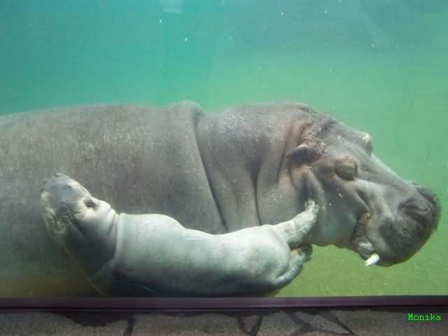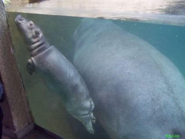 Da es heute Morgen im Zoo ziemlich ungemütlich und regnerisch war, zog es mich ins Fußpferdhaus. Kathi hatte mit ihrer Tochter viel Spaß im Wasser. Sie schmusten und spielten, dass es Spaß machte, Ihnen dabei zuzuschauen.