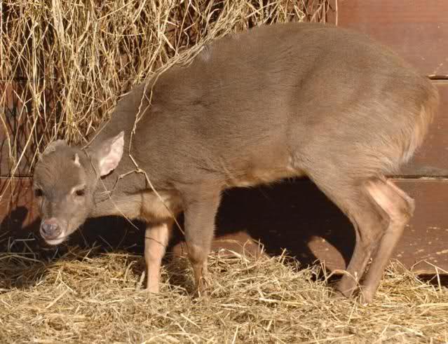 "Pitti hinkt, weil er Arthrose hat", sagt Andreas Appel, stellvertretender Reviertierpfleger. Der kleine Hirsch, der auf dem Zoo-Erweiterungsgelände lebt, ist der Einzige seiner Art - und Zeit seines Lebens Single. "Wir haben ihn zwischenzeitlich mit einem Wasserschwein gehalten, das auch allein war", sagt Kurator Ragnar Kühne.