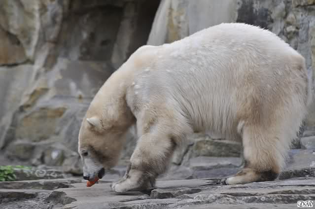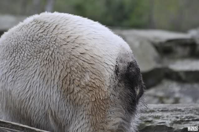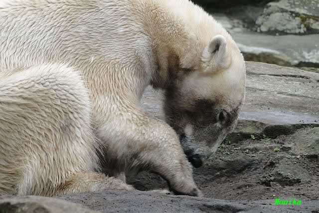 Zunächst wieder der Dank für die vielen brandaktuellen Fotos vom heutigen Tag. Auch ich war am Nachmittag nach der Fütterung im Zoo. Das Wetter war irgendwie ungemütlich und kühl. Es war die sonntägliche Ruhe angesagt. Knut ruhte, Giovanna lief. Einige wenige Fotos habe ich auch mitgebracht.