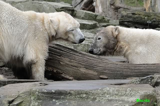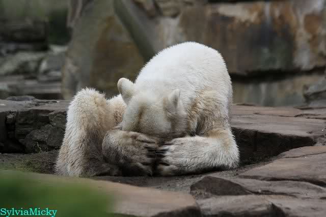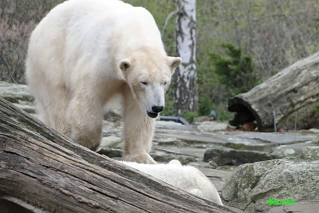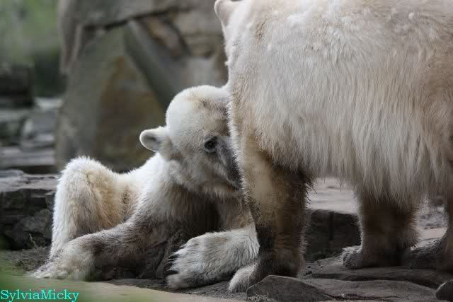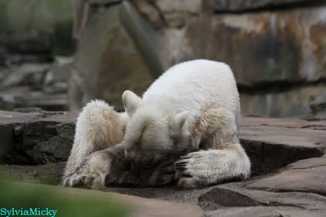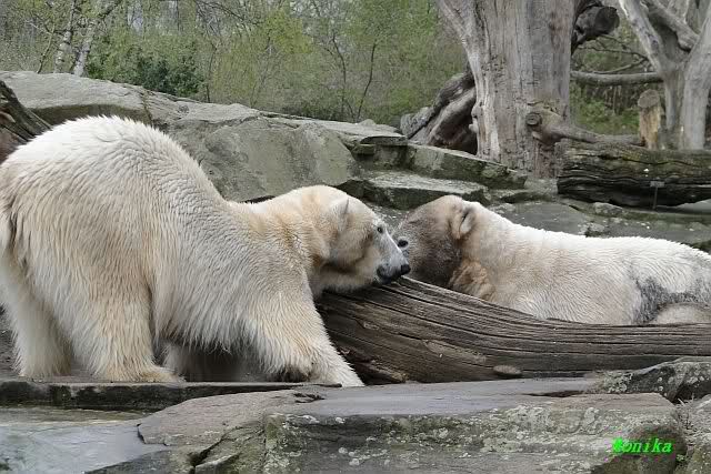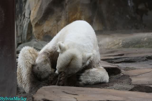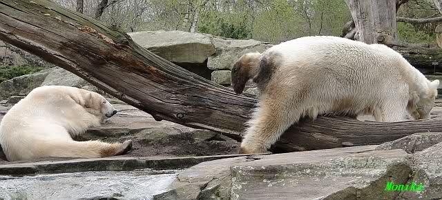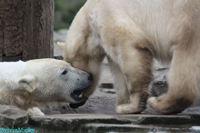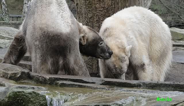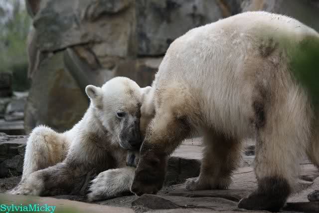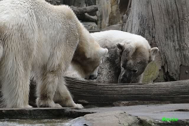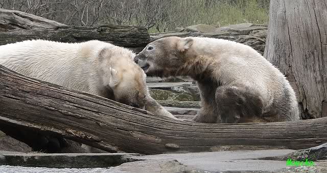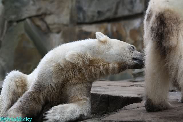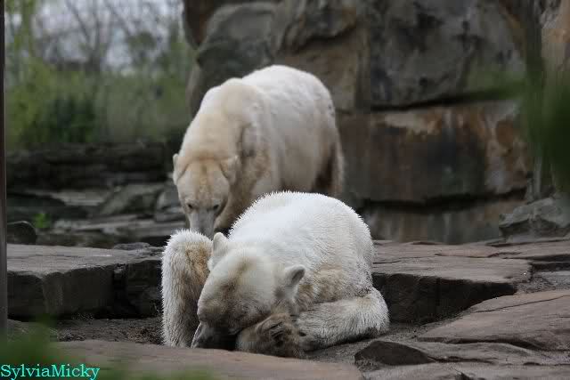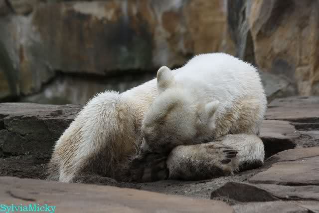 Danke für die heutige Fotoausbeute der Bärchen. Sind die wieder gut getroffen. Armer Knut, er hat aber auch keine Zeit für die Mittagsruhe. Gianna ist eben immer dabei, und stört ihn bei seinem Schönheitsschlaf.
