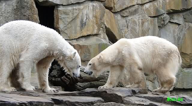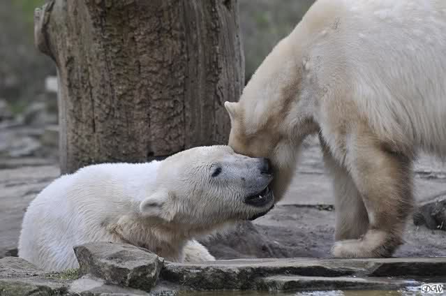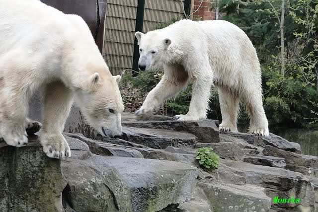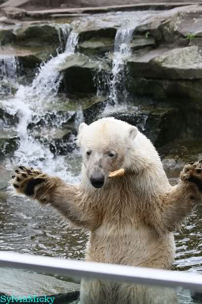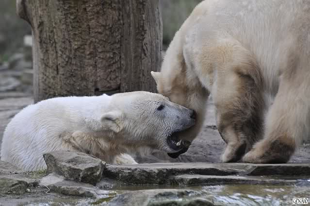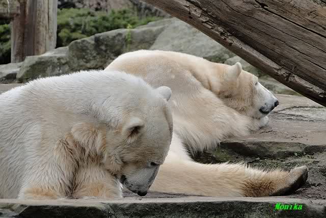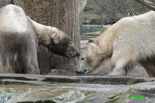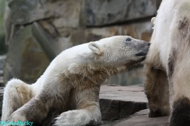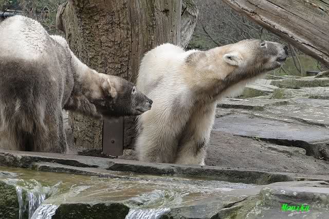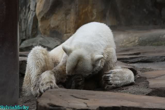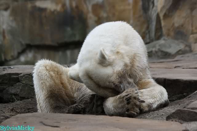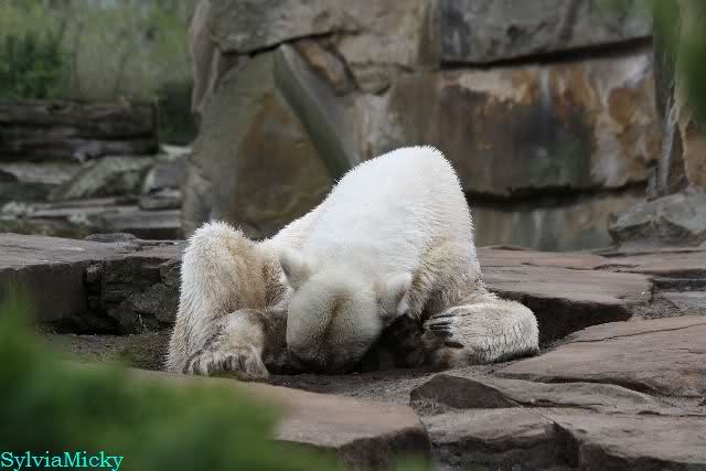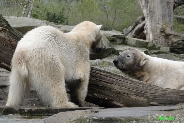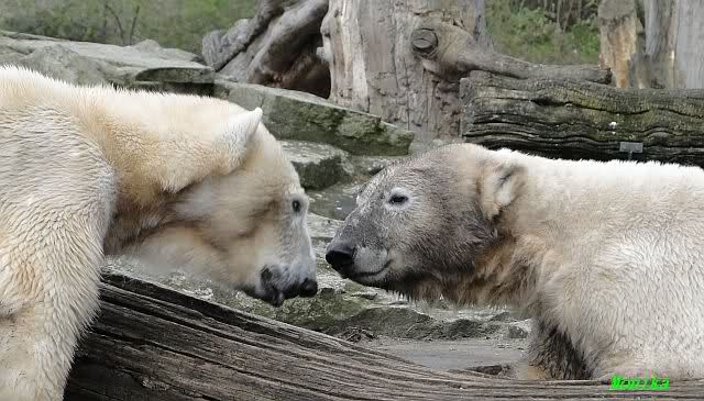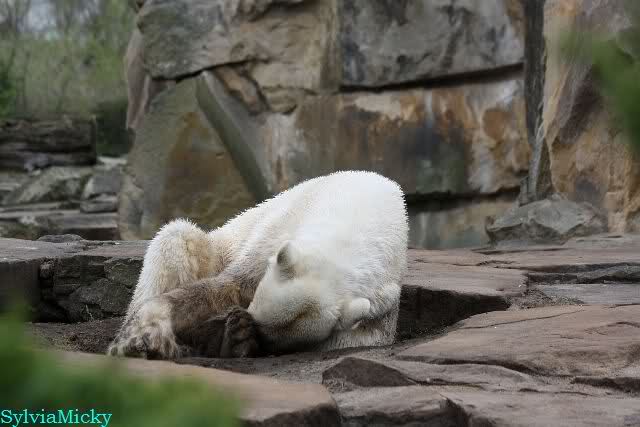 Danke für die heutige Fotoausbeute der Bärchen. Sind die wieder gut getroffen. Armer Knut, er hat aber auch keine Zeit für die Mittagsruhe. Gianna ist eben immer dabei, und stört ihn bei seinem Schönheitsschlaf.
