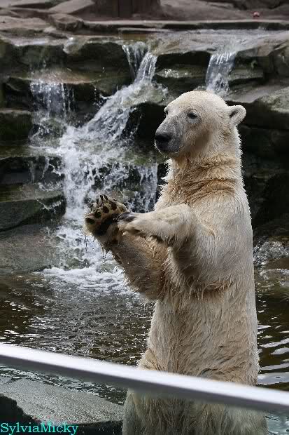 Die Fotos von heute sind ja wieder toll. Typisch Knut, ja, so sieht er aus, so kennt man seine Mimik, seinen Ausdruck. Ich genieße die Fotos.