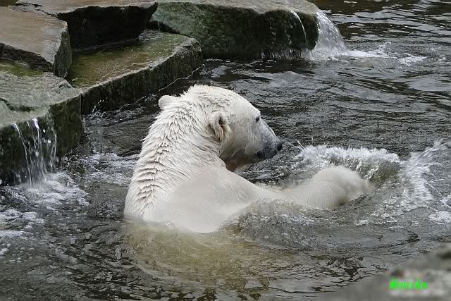 Knut planscht lautstark um auf sich aufmerksam zu machen.