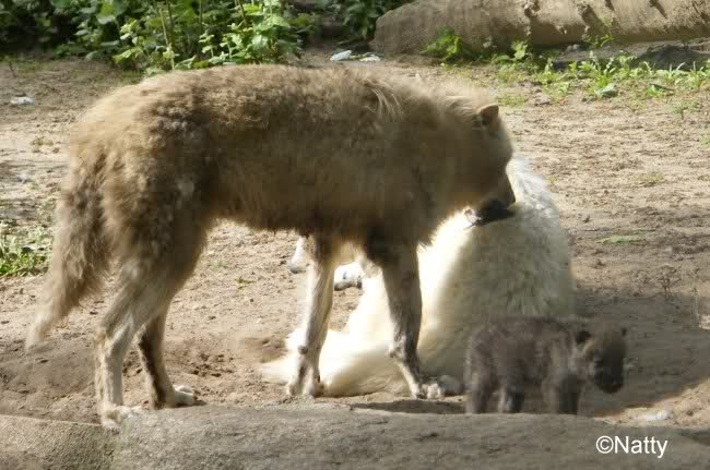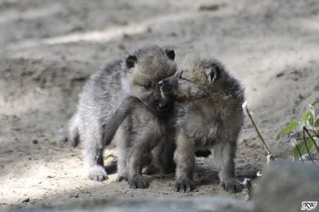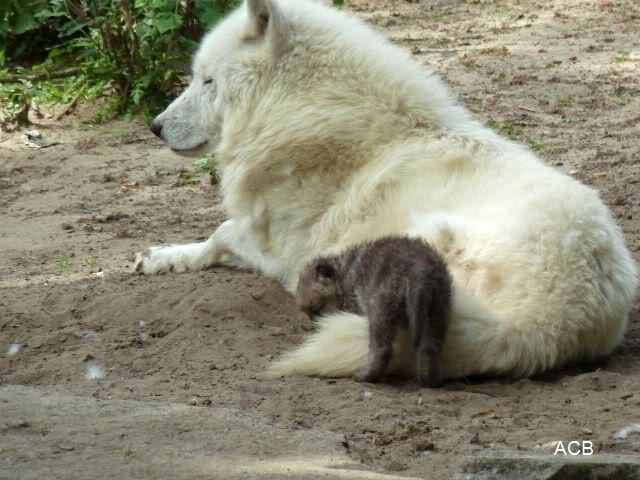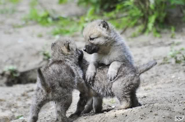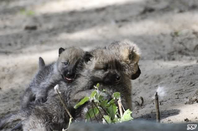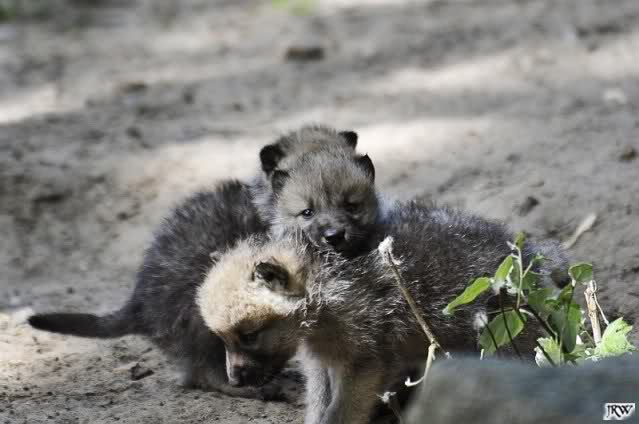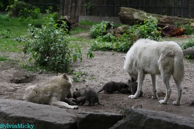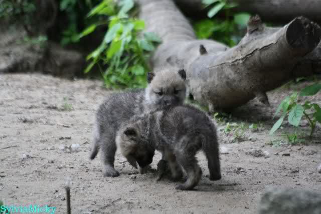 Water, danke für das reizende Video. Die kleinen Wölfe werden immer kesser. Sie lassen sich nicht mehr alles von den Großen gefallen. Sie wehren sich schon ganz mächtig. Jeden Tag kommen sie mehr und mehr heraus und wenn die Großen sie in die Höhle stopfen, kommen sie sofort wieder. Eine freche kleine Bande.