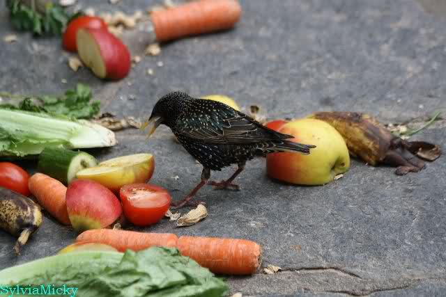 Da die Stachelschweine noch nicht draußen waren, labten sich die Vögel