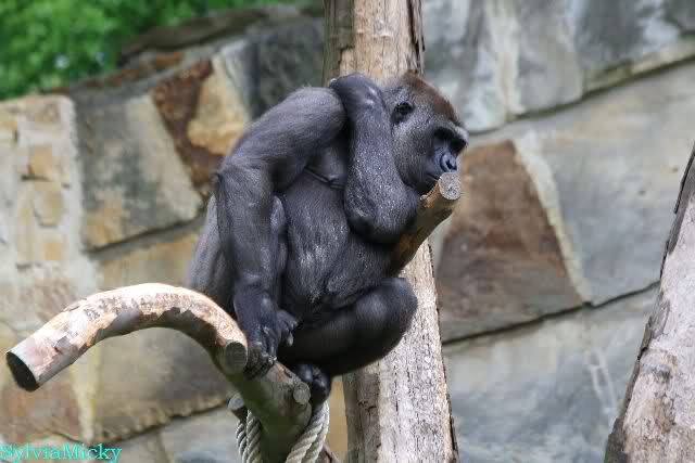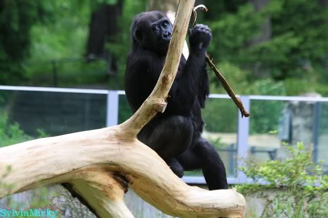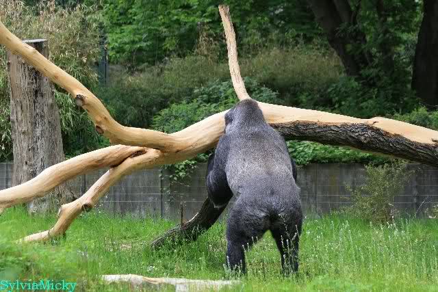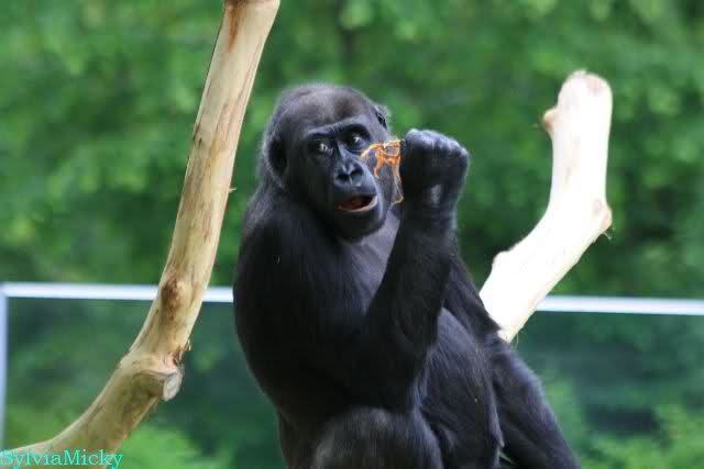 Heute stand ein Besucher die ganze Zeit an der Gorilla Anlage und starrte und sprach die ganze Zeit mit Ivo. Es ist der gleiche Besucher der im Winter ständig die Affen anstarrt. Egal, wo Ivo hin ging er folgte. Auch als Ivo ein Grasbüschel nach ihm geschmissen hat, hörte er nicht auf. Ich habe versucht im Winter mit dem Besucher zu reden. Zwecklos.