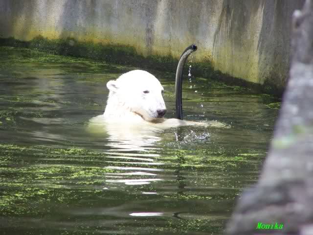 Hello to you all Knut friends around the world. Hot summer in Knut City. But our polar bear is in a good mood. That`s it what you can see on Monikas Knut pictures from today.