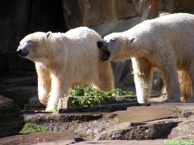 Knut & Giovanna am Nachmittag. Etwas früher als gewohnt gibt es jetzt die nächsten Fotos von den beiden Bären Youngstern, aufgenommen von Ina, gestern im Berliner Zoo.