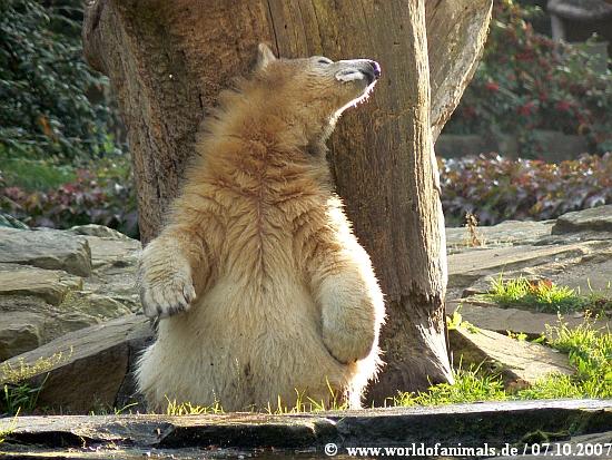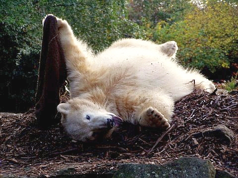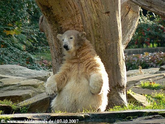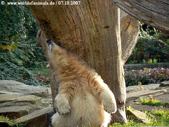 Ein Kompliment an die Fotografin-so tolle Bilder. Man sieht,dass Knut ein sehr lustiger Bär ist und bestimmt weiß, dass er "gut ankommt".Ich kann stundenlang am Gehege stehen, ohne dass mir langweilig wird. Er lässt sich immer wieder was anderes einfallen.Die Sorgen, die vorher vielleicht da waren, geraten dann in Vergessenheit. Danke, kleiner Bär.