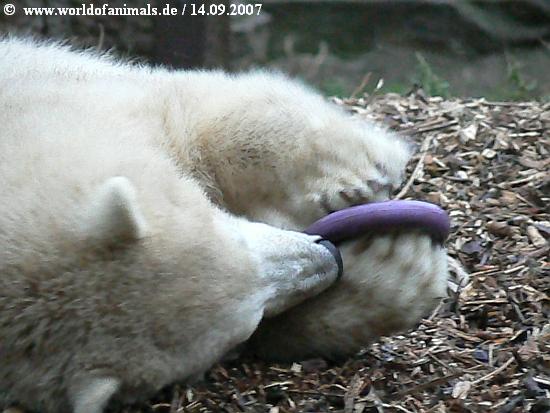 Ich bin der festen Überzeugung das unsere Mails, Briefe und Kommentare in den Onlinezeitungen dazu beigetragen haben das Knut endlich etwas Spielzeug erhalten hat.