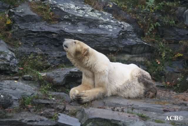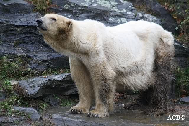 Sie läuft auch ab und zu herum, um sich ihr Futter zu suchen. Aber sie möchte nicht nach oben kommen. Das heißt nun weiter abwarten. Es ist nur für die anderen Bären schlimm, dass sie nicht ins Freie können. Auf meine Frage, ob es nützlich für Lisa wäre, wenn Yoghi auf die Anläge käme, bekam ich die Antwort, dass Lisa nicht so auf Yoghi geprägt ist, wie es umgekehrt de Fall ist.