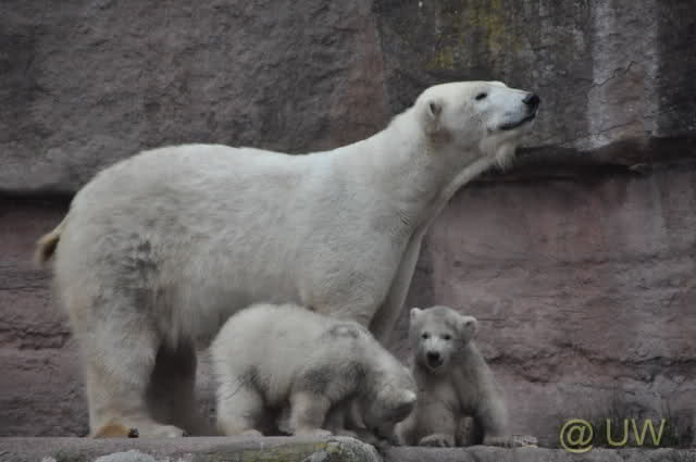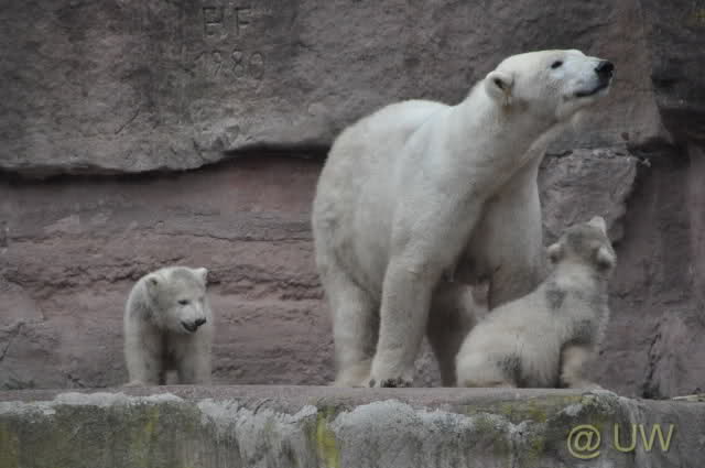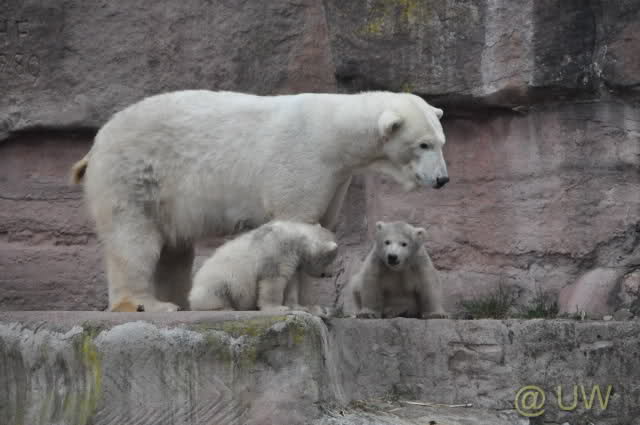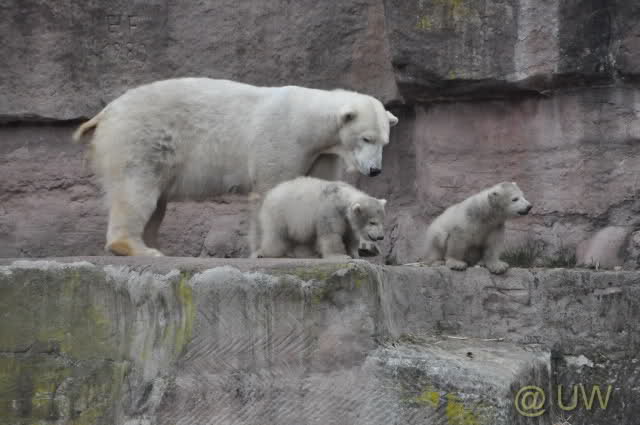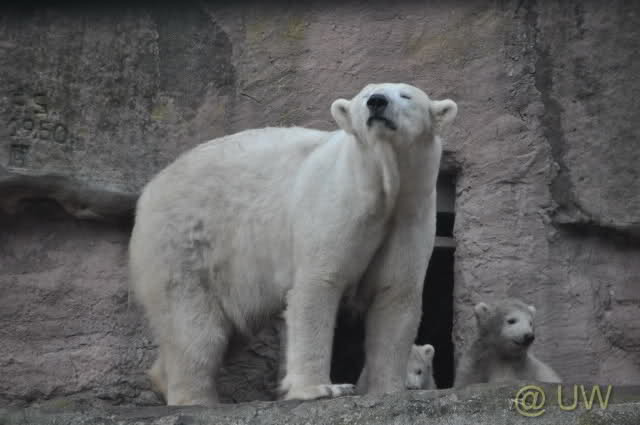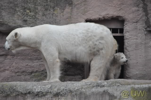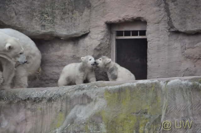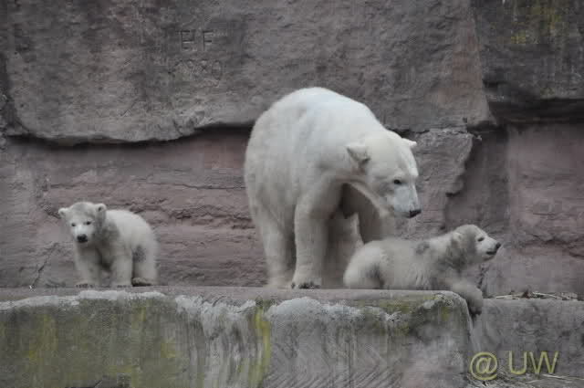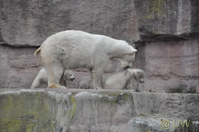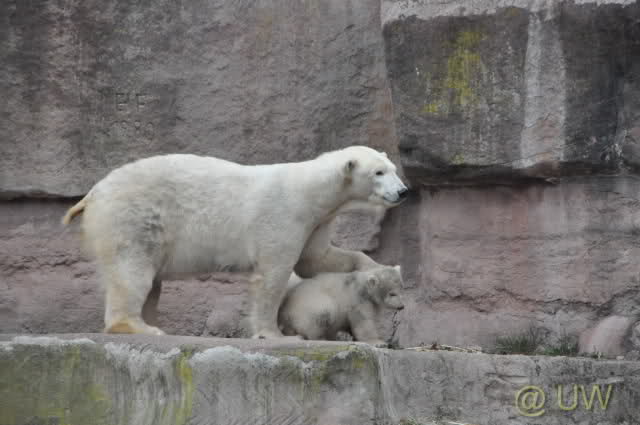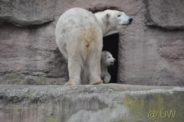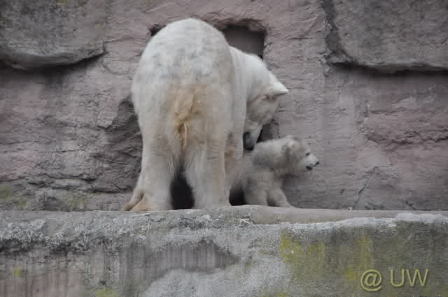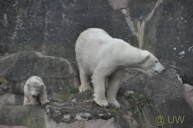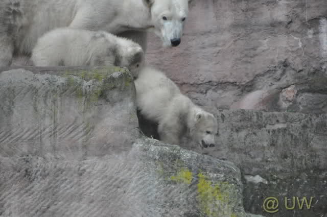 Jetzt geht es in Richtung Treppe - die Stufen sind für Eisbärbabys ganz schön hoch