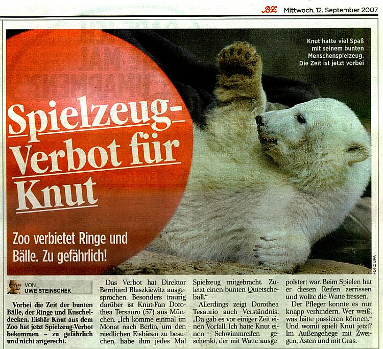 unter www.orf.at ist auch ein Artikel bei den News über Knut aber nichts neues, nur die schon bekannte Geschichte von Dr. Ochs.