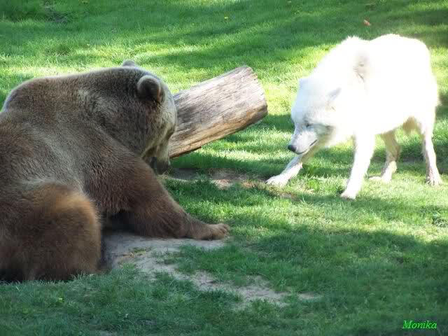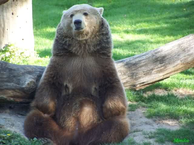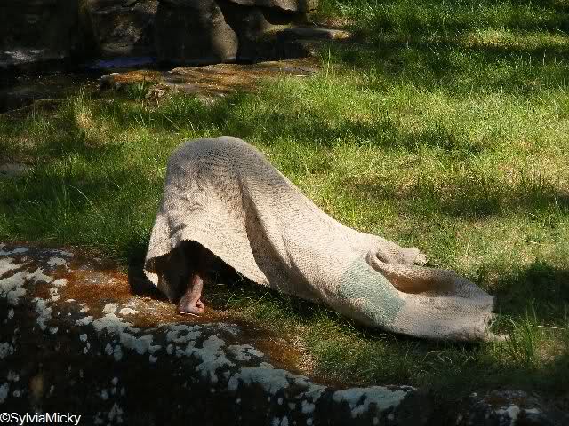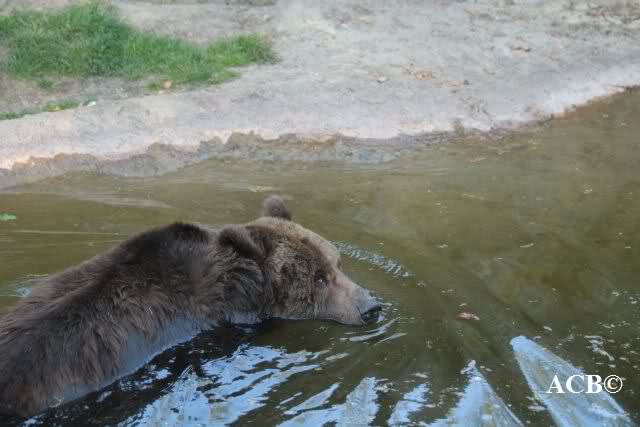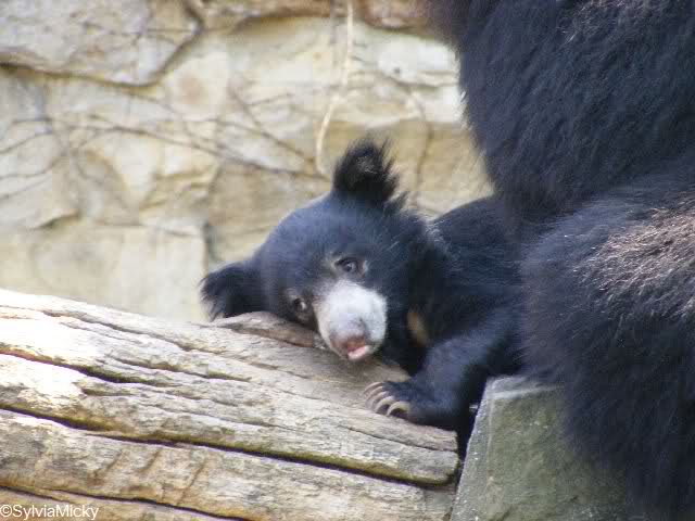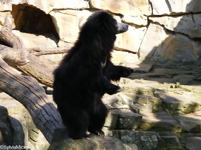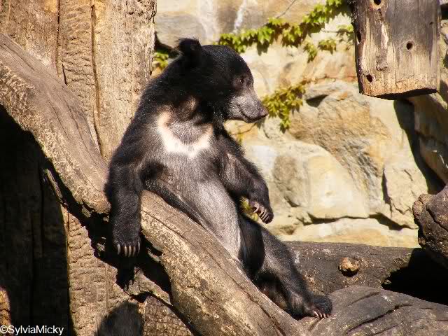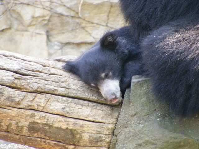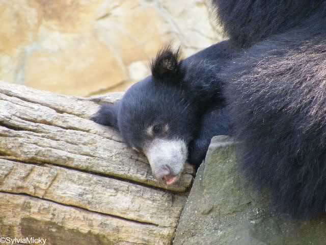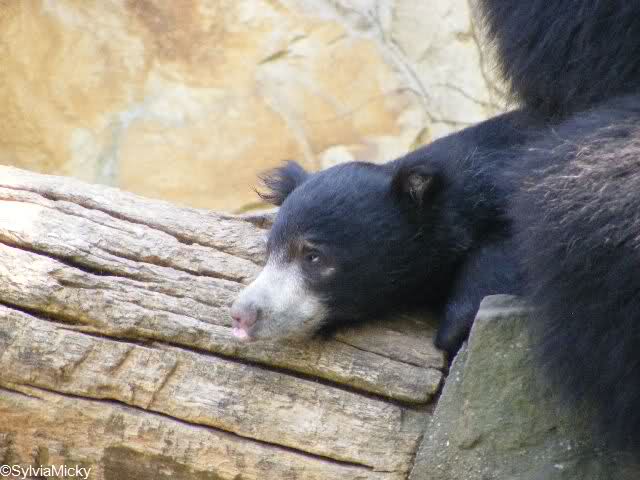 während der Kragenbär zwischen den beiden Anlagen sein Sonnenbad genoß