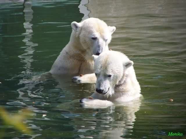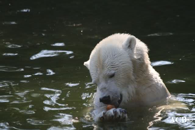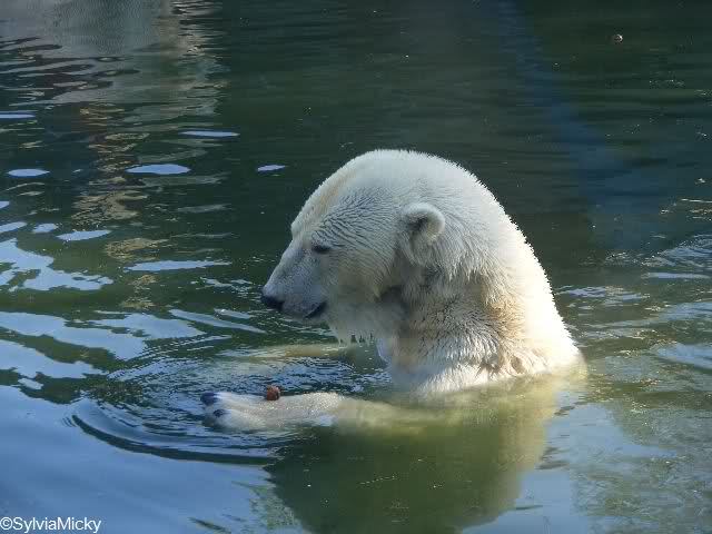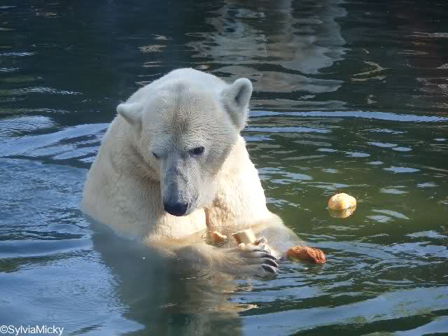 Über Jana haben wir uns heute besonders gefreut. Nachdem sie erst pausenlos ihre Runde um dem Baum gedreht hat, ging sie plötzlich ins Wasser und fand sogar noch ein paar Leckerchen. Während Knut schlief, richteten sich viele Kameras auf die badende Jana.