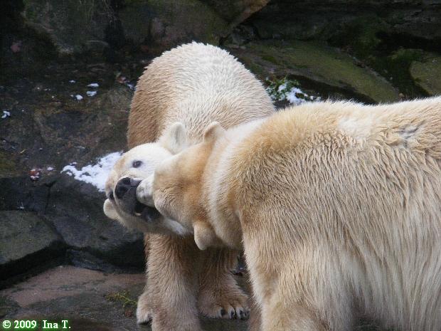 Die 2 Eisbärchen im Schnee spielend und schmusend - einfach zauberhaft