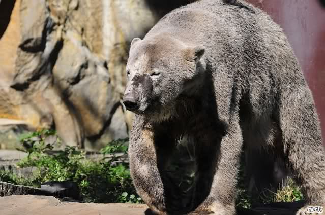 Marion, der junge Pfleger gibt sich wirklich immer sehr große Mühe mit Knut und ist auch sehr geduldig. Rührend ist es anzusehen, wie er Knut die Möhrchen zerteilt. Auch Croissants und Bananen werden einmal durchgebrochen. Aber nicht nur bei Knut, auch bei Bernie und den anderen Bären wirft er so, dass alle an ihr Futter kommen. Das ist zur Zeit besonders bei Bernie wichtig. Ich hoffe, dass es Petzi bald wieder besser gehen wird und sie wieder auf die Anlage kann.