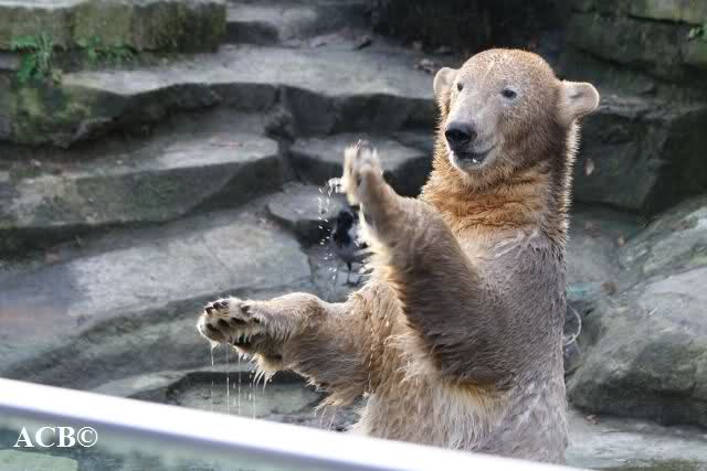 Nun ist der erste Geburtstag auch für die süsse Nürnberger Prinzessin da und ich hoffe, trotz der gestrigen traurigen Meldungen über eines ihrer Geschwister, dass man sie doch "feiert" und sie sich über Geschenke oder zumindest ne Eistorte freuen darf. Sie macht wie Knut auch so vielen Leuten Freude, wünsche ihr ein langes und gesundes Eisbärenleben und heute viele Freunde die sie besuchen mit Rücksichtnahme natürlich auch auf Vera und ihr kleines....