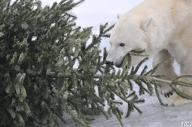 Die beiden Bäume stammen aus einem Test des Berliner Rundfunk 91,4 wie lange sich Bäume im Zimmer halten. Eine Billig-Fichte war dabei und eine Nordmanntanne. Hörer konnten heute früh anrufen, wenn sie die Bäume haben wollten. Zufällig hörte ich den Anruf von Dr. Klös, der die Bäume für Knut haben wollte. Ich habe die Daumen gedrückt, das es klappt. Und wie ich das jetzt lese, freue ich mich richtig darüber.