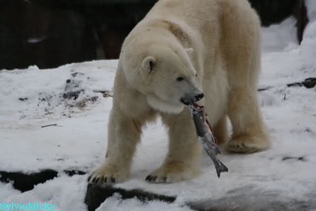 Heute gab es viel wofür man dankbar sein durfte: Herr Röbke nahm die Lachse der auswärtigen Knutfreunde für die Eisbären entgegen. Die Bitte, die Lachse doch nachmittags zu füttern gab er netterweise an Herrn Henkel weiter und dieser erlaubte es.