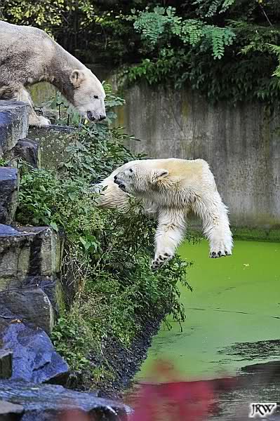 Dieses Video von Jessie zeigt Knut und Gianna heute. Es sind einige interessante Szenen dabei, z.B. am Anfang läuft Gianna über die Anlage und sucht Knut, er liegt und schläft, sie findet ihn und beleckt ihn kurz oder Knut's Versuch Gianna in ihr Hinterteil zu zwicken und was dann passiert. Für eine Sekunde hielten die Besucher den Atem an.