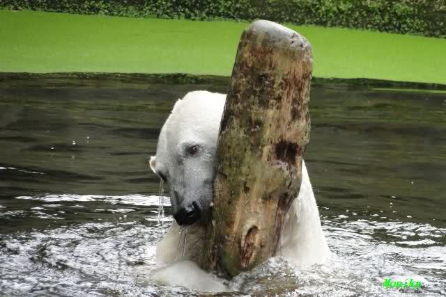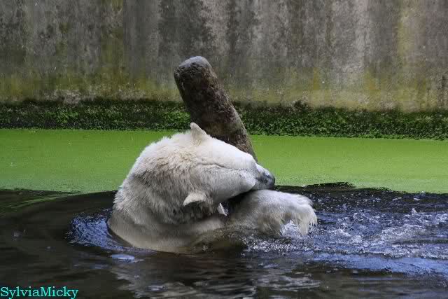Dann war wieder der Baumstamm am Wickel. Als ich gegen Mittag den Zoo verließ, spielte Knut immer noch mit dem Baumstamm