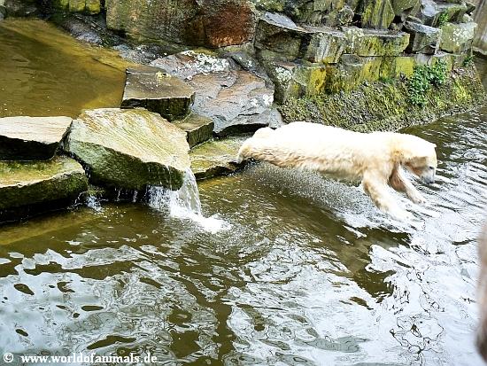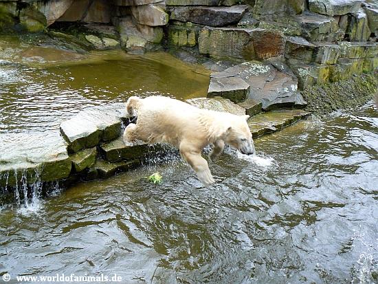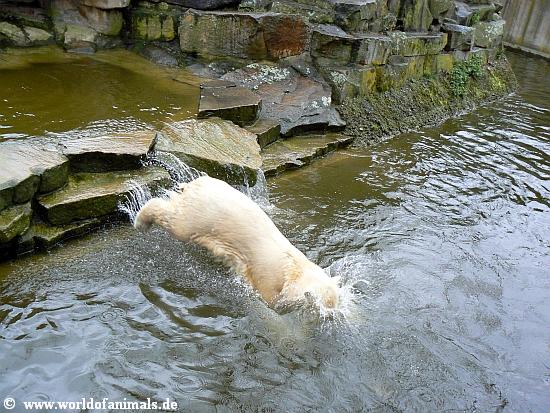 Knut trained for the Polar bear Jump Championship today. His first jump was the best. Resault from the visitors: 6.0 points. The flying Knut.. / Knut trainierte heute für die Eisbären-Sprungmeisterschaften. Der erste Sprung erzielte gleich die Note 6.0 von den Besuchern. Der fliegende Knut...