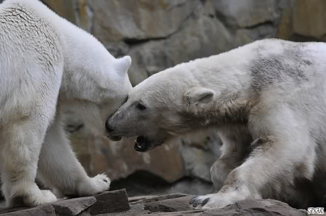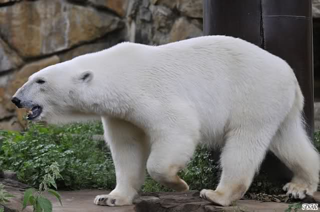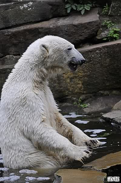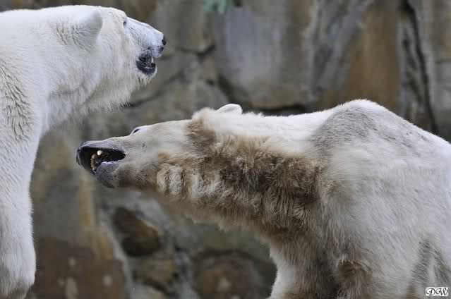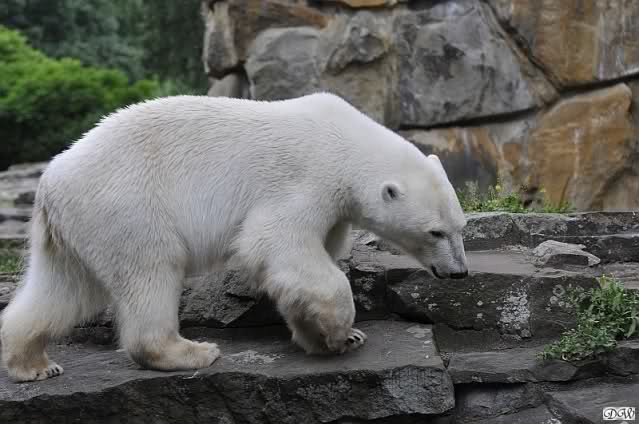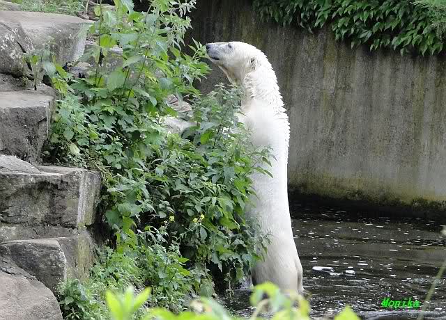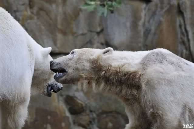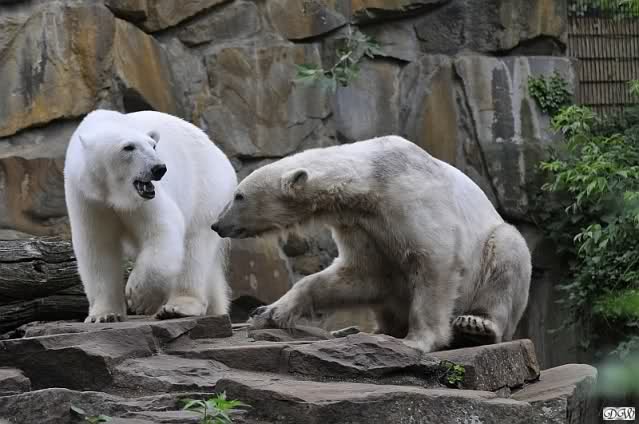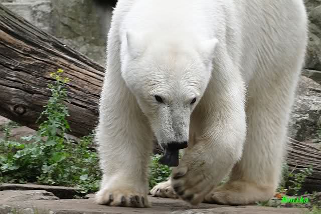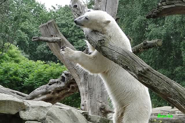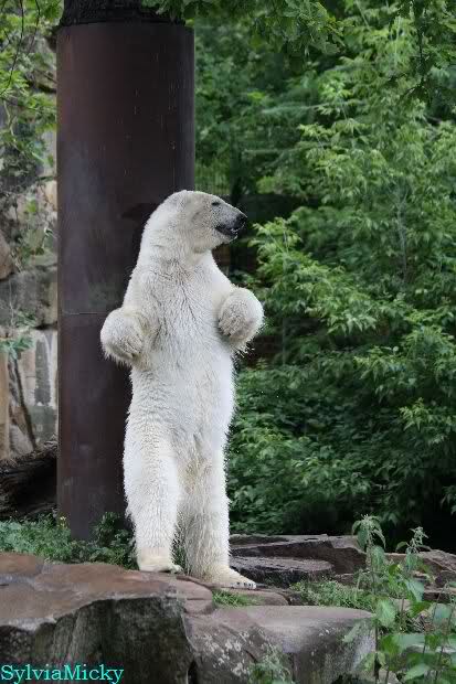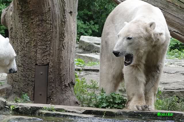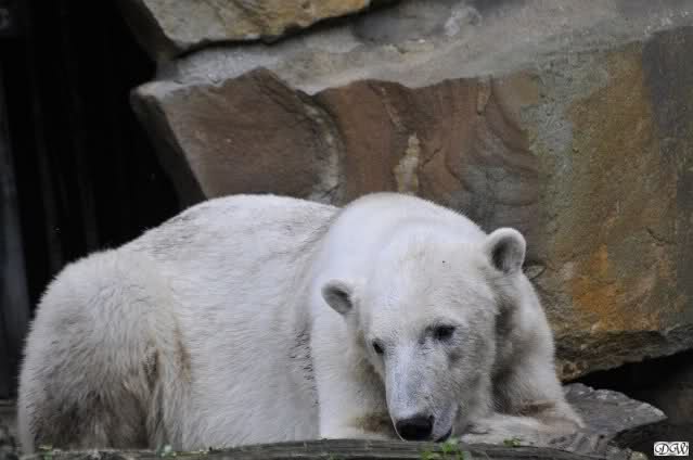 Eine Knutfreundin erzählte mir, daß die Braunbären sich gestritten haben. Gianna hatte sich sehr erschrocken und lief zu Knut hin der unter dem Baum lag und schlief. Er brummte sie aber weg. Gianna lief den ganzen Vormittag und setzte sich erst gegen eins hin.