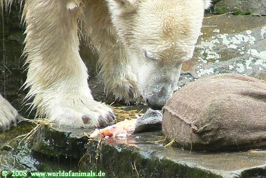 Good evening to you all international Knut friends around the world. First thanks to Yeo for her new Zoo report and to Sylvia for her pictures from the white bear with his new jute bag.