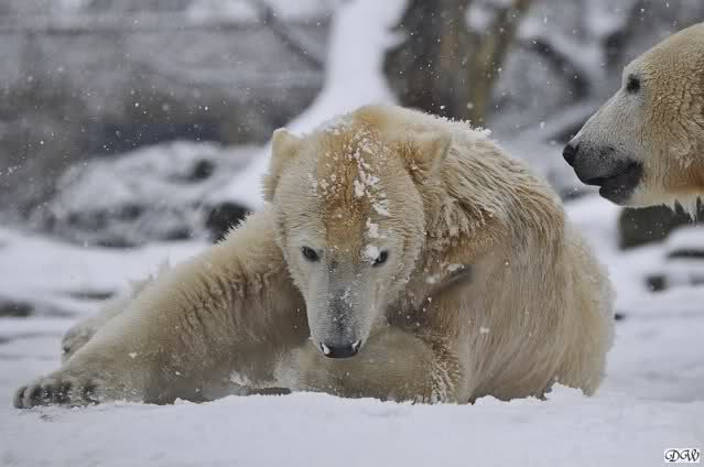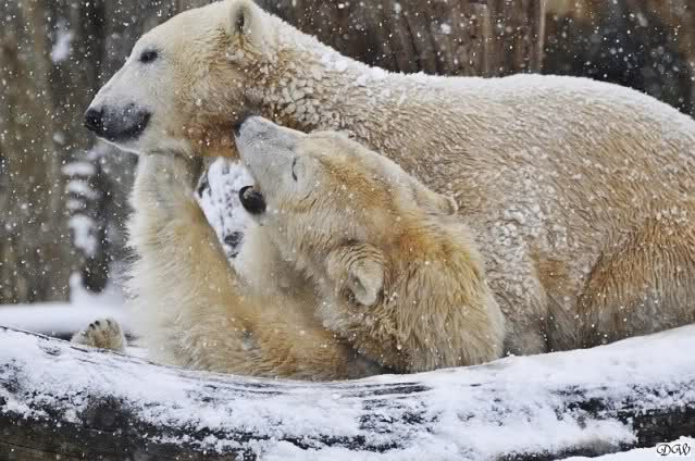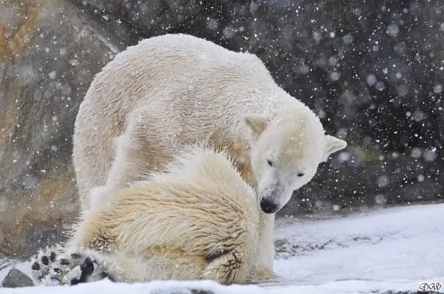 First of all, I would like to thank all the photographers for the wonderful pictures and videos of the recent days: our beloved polar bears are lovely playing together in the snow... They also look very beautiful with their fur so cleaned and white!!