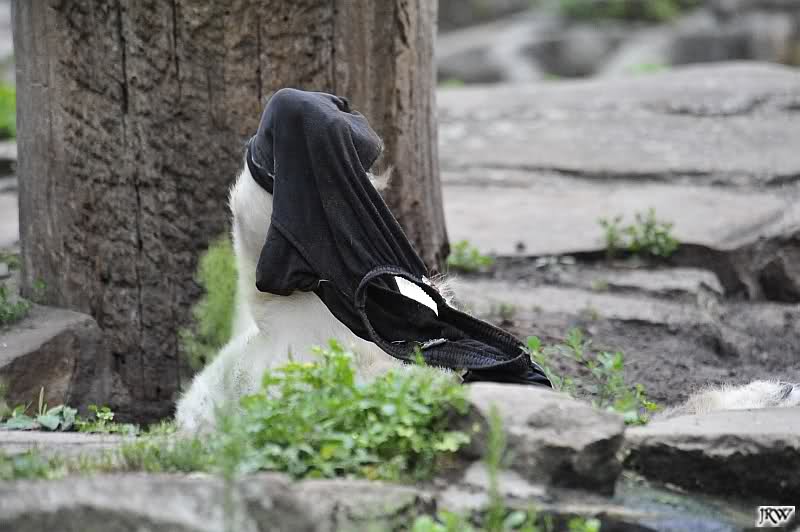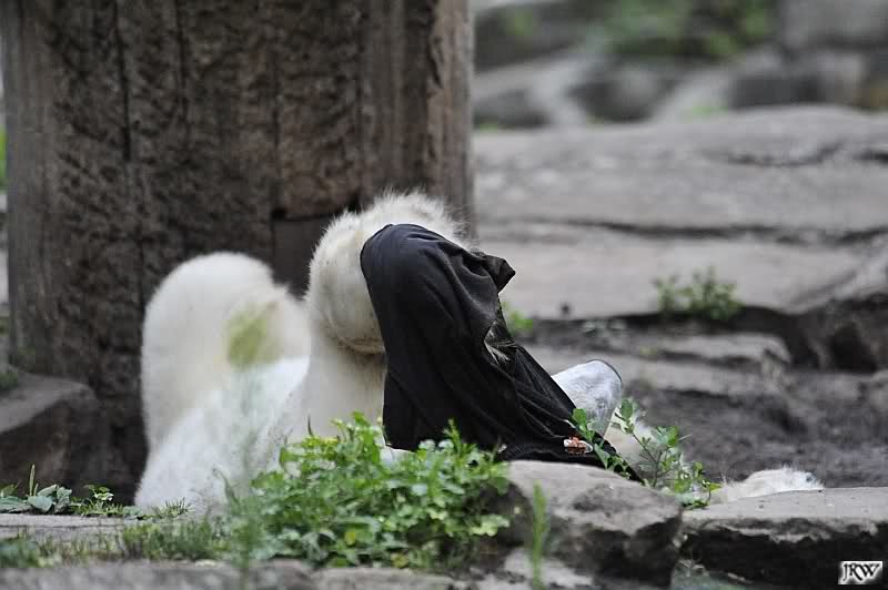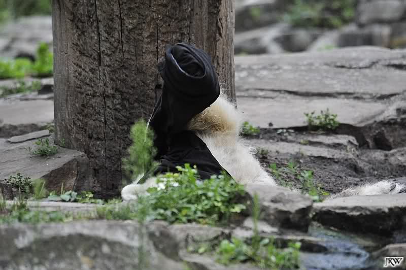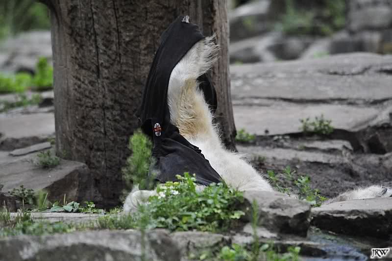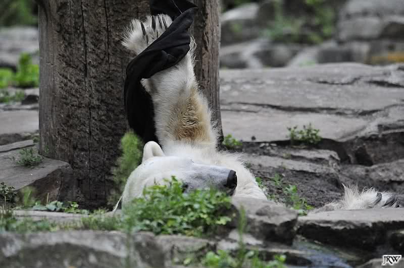 Als ich mittags ging, lag Knut vor dem Höhleneingang und nuckelte, und Gianna lag am Baum.