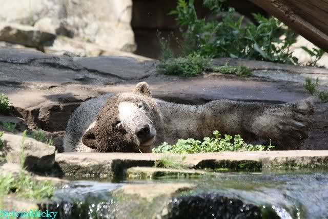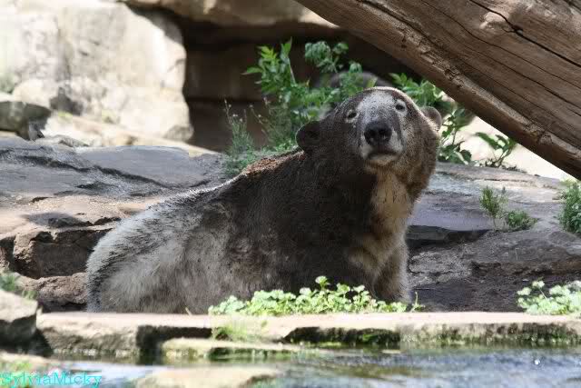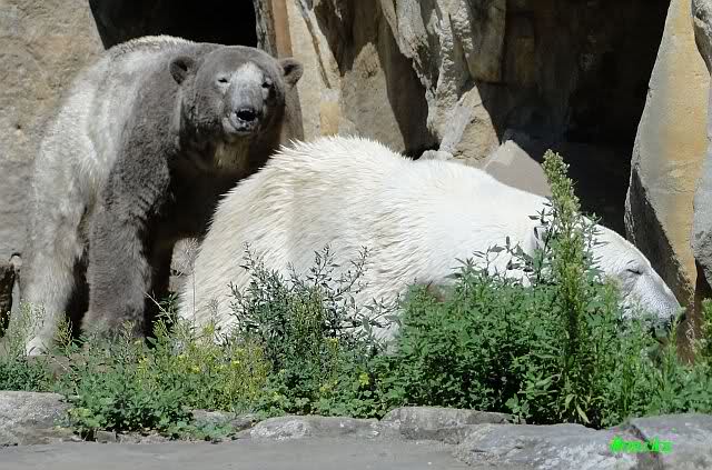 Wie Monika schon schrieb, war Knut heute früh äußerst aktiv. Als er sich in den Höhleneingang legte und Gianna zu ihm kam, brummte er sie an.