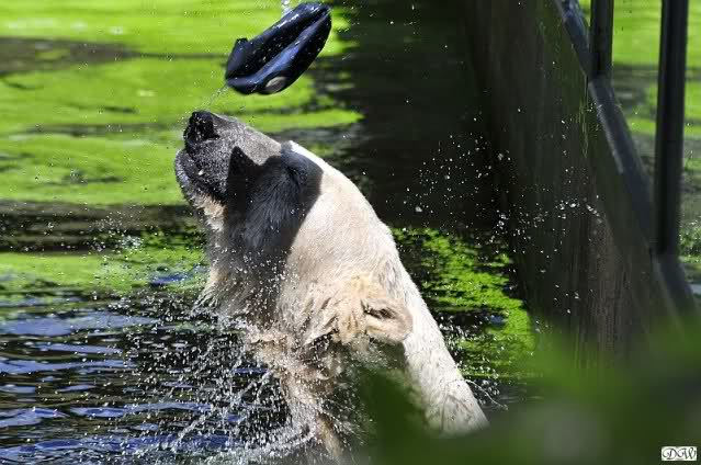 Knut spielte auch nachmittags Ball mit den Besuchern. Er tobte durch das Wasser mit anderen Spielzeugen nur um wieder zurückzukommen und ein erneutes Ballspiel zu starten.