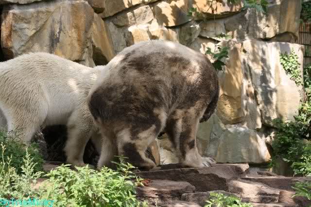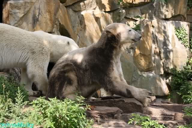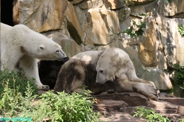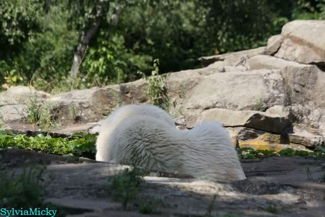 Vor einigen Tagen traf ich ein nettes Ehepaar aus Texas bei den großen Eisbären. Sie sind extra wegen Knut nach Berlin gekommen und haben seine Geschichte von Anfang an mit verfolgt. Sie fragten mich, wer von den Dreien Knut sei. Ich ging dann mit ihnen zu Knut.