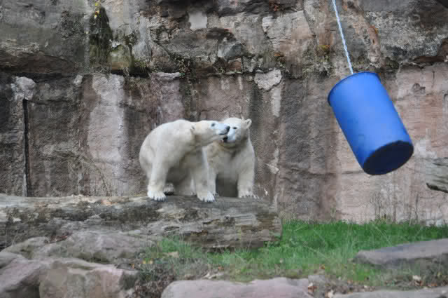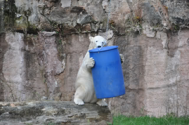 Flocke hat die Lage jederzeit im Griff und kann die Tonne problemlos wieder auffangen und festhalten ...