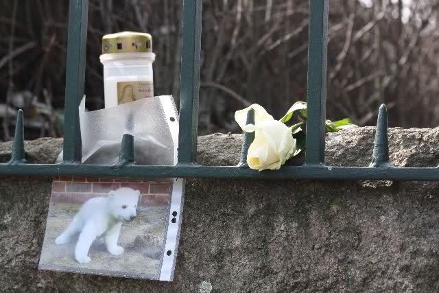 Am Eisbärengehege standen viele Besucher. Stammbesucher, aber auch viele Touristen. Viele hatten Tränen in den Augen und es gab nur ein Thema: Knut lebt nicht mehr. Als ich kurze Zeit später den Zoo verließ, stellte ich am Zaun noch ein Grablicht ab. Eine weitere Kerze in einem Meer von Lichtern.