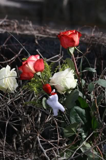 Vor wenigen Tagen las ich, dass jemand für Knut vier Rosen abgelegt hatte, für jedes Lebensjahr eine. Das gefiel mir sehr gut. Deshalb kaufte ich auch vier Rosen für Knut. Weiße Rosen.