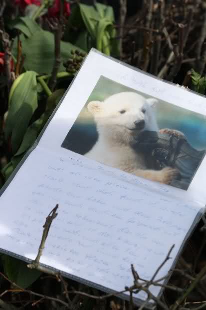 Als das Bravo Team da war, dachte ich bei mir, wieviel Geld haben die Medien mit Knut eingenommen. Nur von der Bravo lag ein wunderschöner Strauß mit Aufschrift am Gehege.