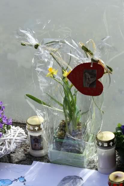 Auch heute haben Besucher viele Blumen, Karten und Fotos abgelegt.