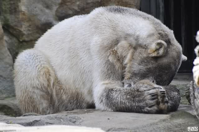 Wir sagen dagegen: Knut hat sich wieder schön geschminkt und er schläft, wie ein Kind.