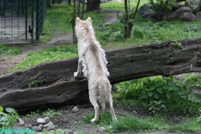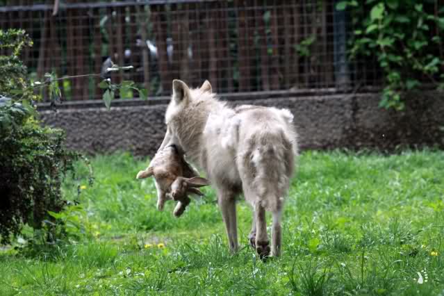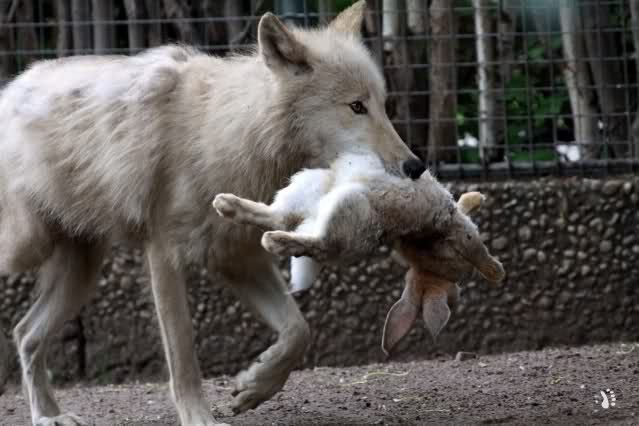 ... Mama Wolf trägt stolz ihre Beute durch's Gehege