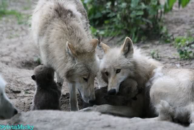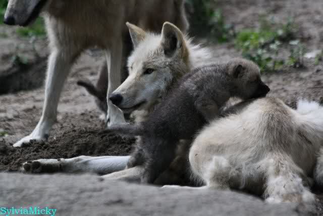 Kaum kommt der dritte Wolf dazu, steht die Mutter auf