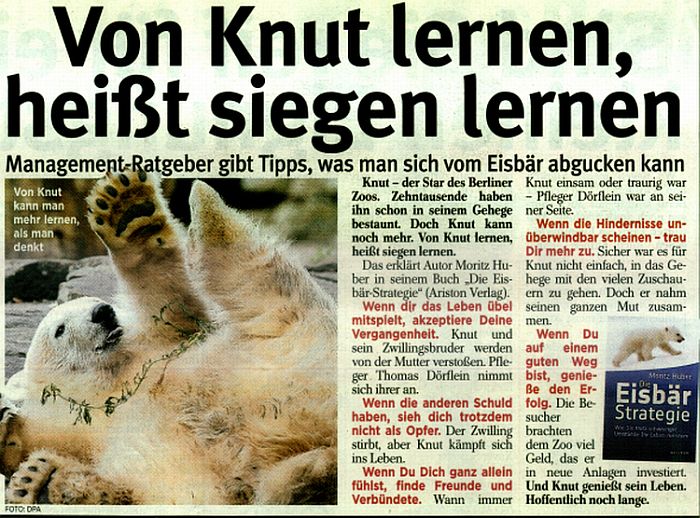 Wir sollten erst einmal abwarten. Ich glaube , die wissen selbst noch nicht, was mit Knut wird. Allerdings würde ich ihm bald Gesellschaft wünschen.