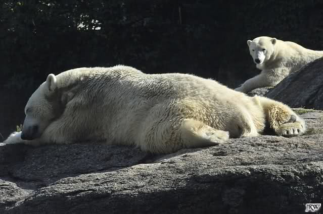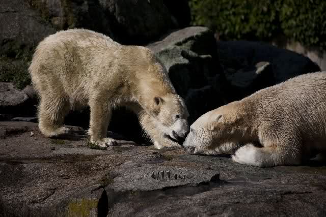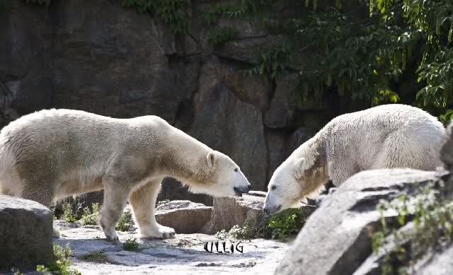 Auch ohne Anruf oder SMS gingen wir heute in den Zoo zu Knut und auch zu den anderen Tieren. Inzwischen hatten wir schon aufgeregte Knutfreunde getroffen, die uns berichteten, dass Knut und Tosca zusammen auf der Anlage waren und dass alles gut zu verlaufen schien.