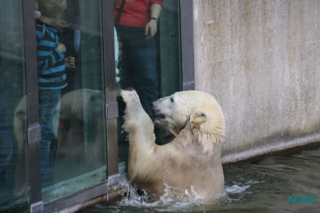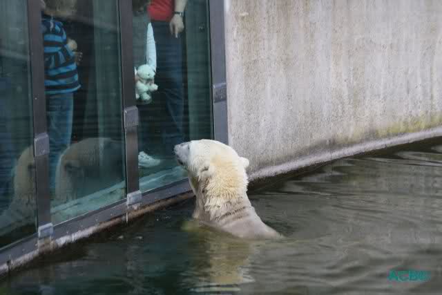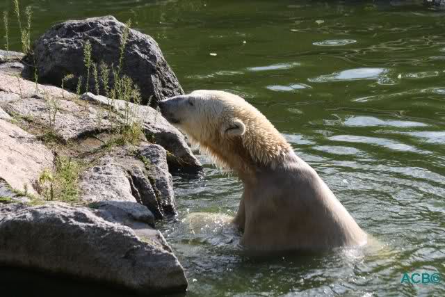 Good evening to you all international Knut friends. I was in Zoo at afternoon today. Knut was playing in water, he was in contact with his public and he we had the chance to watch his little aerobic show Hope to post a little video tonight.