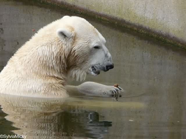 Lars spielte heute mit dem winzigen Rest des grünen Eimers den ihm Herr Dörflein noch reingeworfen hat! Die Eisbärdamen waren heute nicht zu sehen.