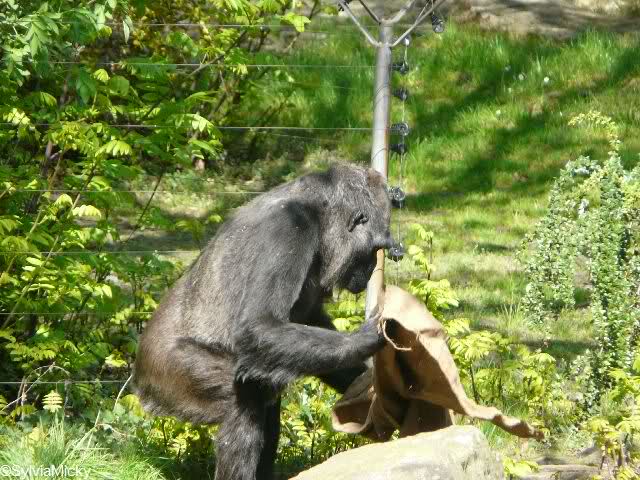 Auch bei den Orang Utans war Jutesackmode angesagt. Wie sich überhaupt auf den ganzen Affenaußenanlagen viele Jutesäcke befinden.